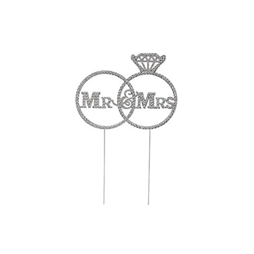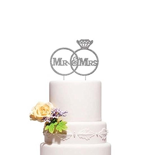 Mr. & Mrs. Silver Rhinestone Sparking Glitter Wedding Rings Cake Topper