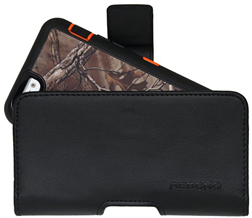-. Title : Rebono Black Leather Belt Clip Holster Pouch For iPhone 6 , iPhone 6s Otterbox Defender Case - Black (Black)