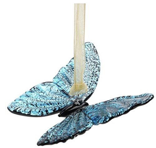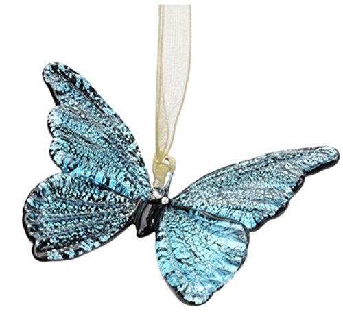 Dynasty Gallery Hand Crafted Glass Christmas Tree Ornament or Figurine Blue Matallic Butterfly