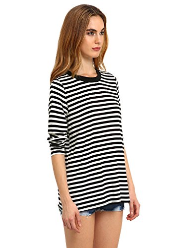 -. Title : ROMWE Women's Long Sleeve T-shirt Round Neck Basic Striped Blouse