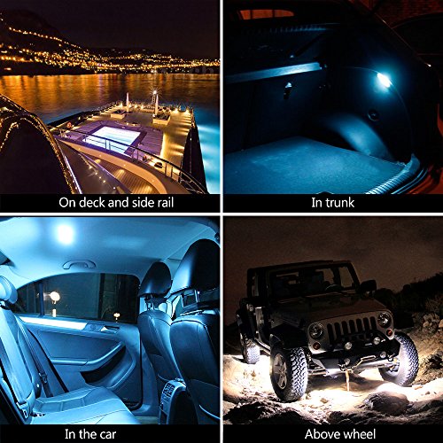 - ROCK LIGHTS WITH WIDE APPLICATION - This LED rock lights kit is suitable for all DC 9-32V vehicles. Great use as auto underbody lights & underglow lights,boat deck lights and underwater lights, 4x4 off road lights, trail fender lights, neon lights replacements etc. Small light weight design allows these rock lights for installation on almost any locations.