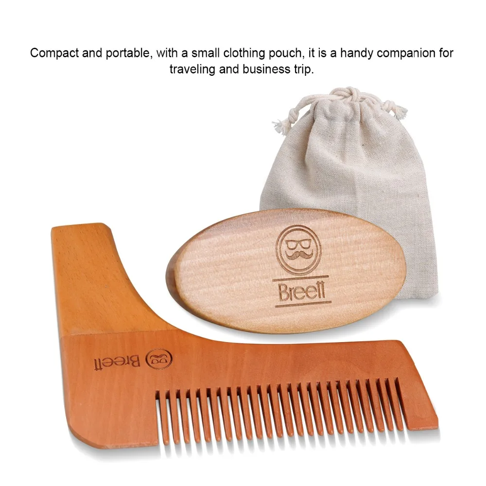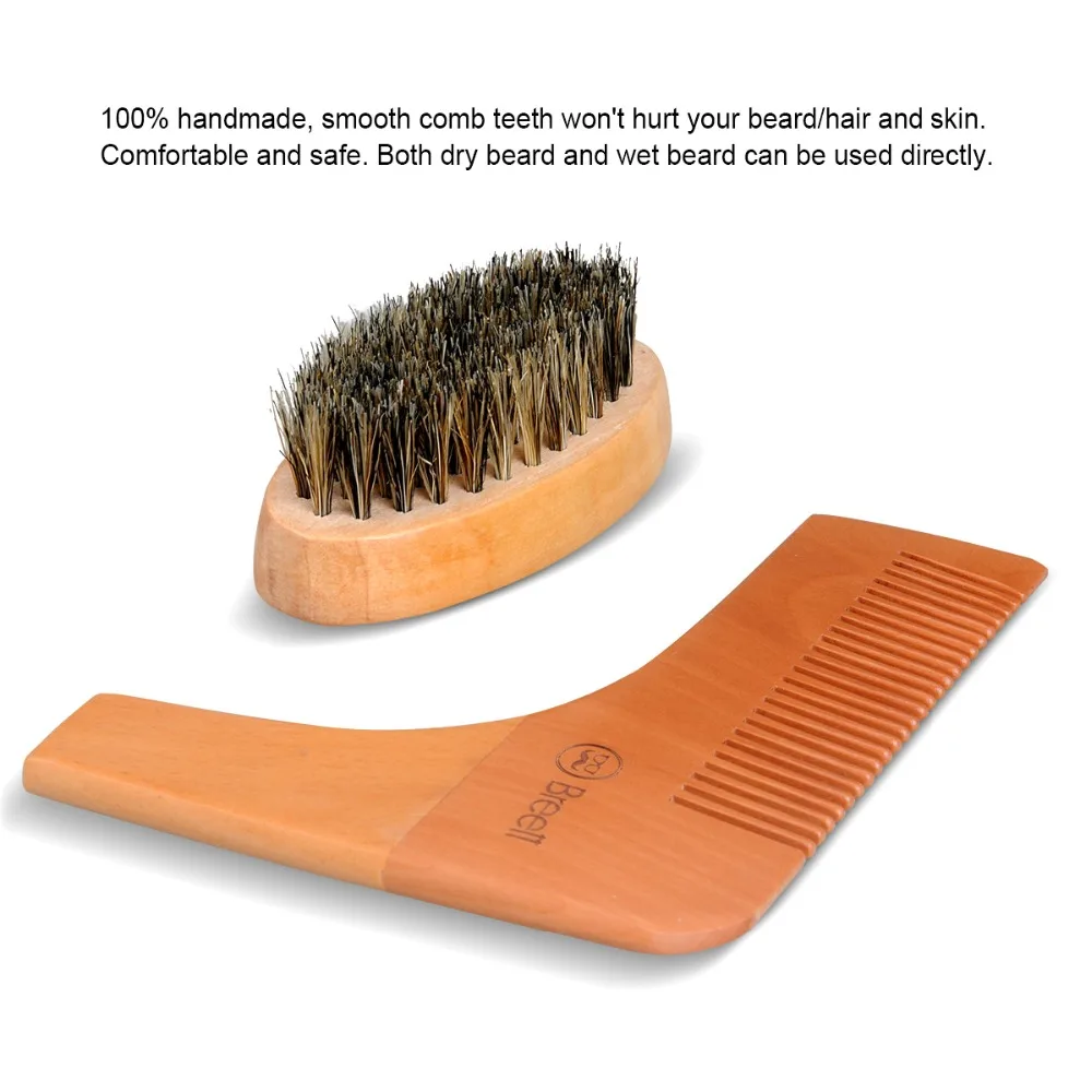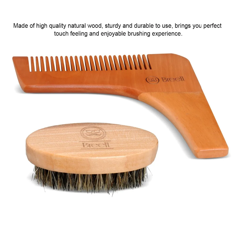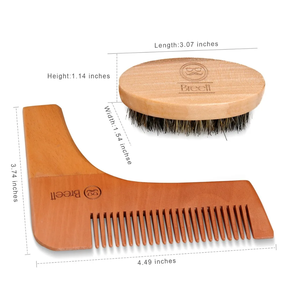 Breett® Natural Bristles Beard Brush & Pure Wood Comb Kit