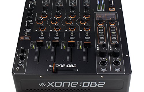 The Xone:DB2 from Allen & Heath is an extremely high-end, 4-channel DJ mixer without a high-end price tag. This professional DJ FX mixer takes full advantage of the onboard studio-quality FX that will dominate any club system. Originally developed for Allen & Heath's iLive pro touring system and rated by some of the best ears in the business, the FX algorithms have been painstakingly optimized for DJ use. Xone:DB2 has more than 50 FX presets divided into 5 FX types: Delays/loopers, Reverbs, Resonance, Modulation and Damage. These are studio grade FX; in fact, several legendary producers already use the DB range FX in their recordings. The Expression and Wet/Dry controls give intuitive, hands-on control for everything from subtle FX washes to total transformation. For those who want to drill down further, individual FX variations can be further modified via the rotary controls under the screen. Each of DB2's four input channels has a full input matrix that can select from four analog (Line or RIAA), four USB, or two digital sources, allowing for a wide variety of audio sources to be connected simultaneously. The same source can also be selected on multiple channels. Xone:DB2 adopts the fresh approach to creative equalization introduced on DB4. The EQs can be used in three different modes: standard asymmetric EQ (+6/-26dB), total Kill (+6dB/OFF with a 24dB/octave slope), or high-pass/low-pass filter which lets the high control act as a low pass filter, the low becomes a high pass filter, and the mid control is an adjustable resonance for the filter. Allen & Heath is known for building high quality mixers for the last 40-plus years. At any time of day or night, across the globe, there is an Allen & Heath mixer out there working hard, sounding great and making life a little easier for the person at the controls.Feature