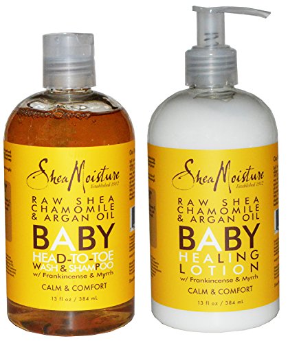 Features: 1 (13 Fluid Ounce) Raw Shea Chamomile and Argan Oil Head to Toe Wash and Shampoo and 1 (13 Fluid Ounce) Raw Shea Chamomile and Argan Oil Baby Healing Lotion