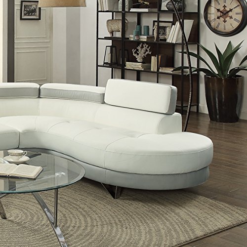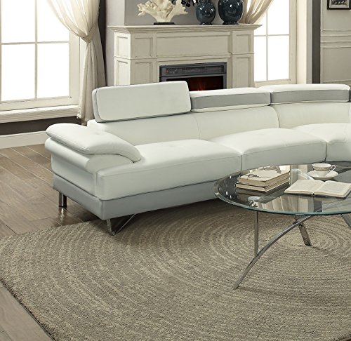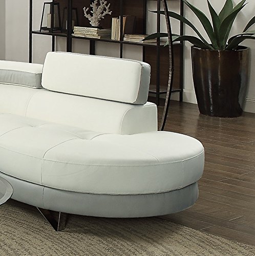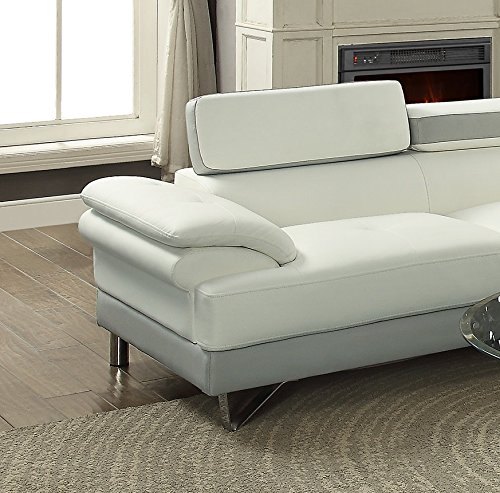Studio : California Tradeworks Publisher : California Tradeworks Product Description 2 Piece Sectional Sofa set in Faux Leather. Color : White And Grey Set Includes : 2pc Sectional Sofa Only. Dimensions : Chaise : 85" x 38" x 29-34"H Sofa : 64" x 35" x 29"-34"H . Assembly : Simple Assembly Required. Shipping : Shipment will take around 3 to 12 business days. Shipping include : Curb Side delivery only, No inside home delivery. Description :- Take flight with this 2-piece sectional featuring a unit upholstered in a smooth faux leather with a wide seating are and two-paneled back cushion with adjustable headrests. Spruce the contemporary flavor in your home living space. 0