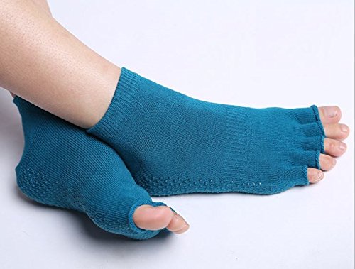 FAST 【3 족세트/선택는 컬러】미끄럼방지 부착 요가 용 5개 손가락 삭스 레이디스 양말 손가락 없음 22cm~26cm 대응 (블루)