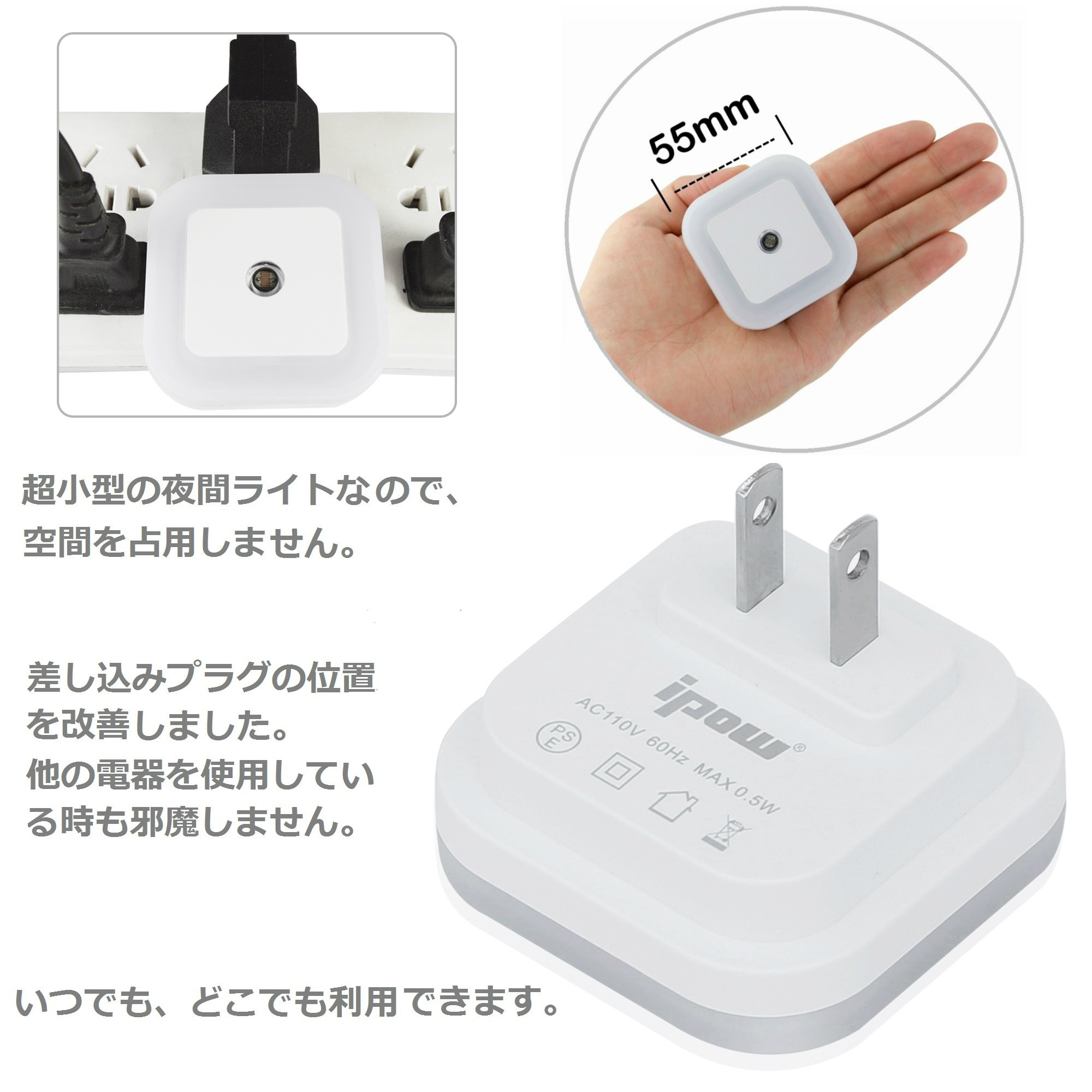 Power supply adapter used, light sensor built-in LED nighttime light.