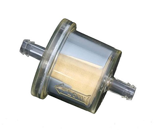 Product DescriptionHigh flow/high capacity Size: overall diameter: 1.75in. Inlet/outlet diameter: 5/16in. Fits fuel lines: 1/4in. Length between hoses: 1-1/4in. E85 compatible Sold Each0