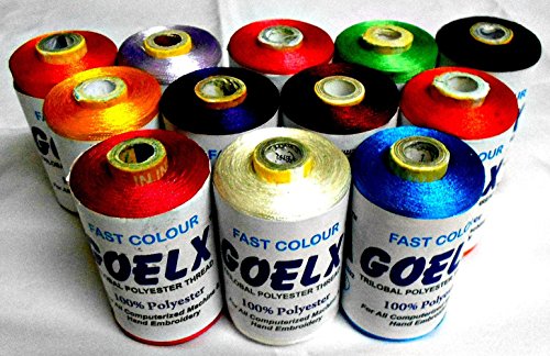 GOELX Polysilk Thread / 12 Spool /2000 Yard Each / Mix Colors, For Tassel Making/ Jewellery Making/ Embroidery, Decorative & Lustrous Stitches,Fast Colors Azo Free