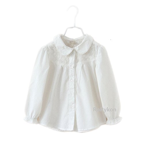 -. Title : RoRykon 子供服 ブラウス 女児ブラウス 白ブラウス 丸襟花刺繍 無地 長袖 可愛い ドレス用スーツ 卒園式 卒業式 入学式 発表会 結婚式 受験 面接
