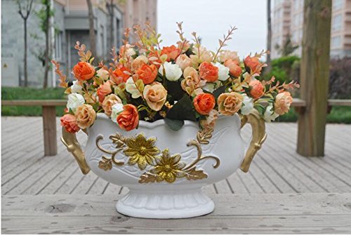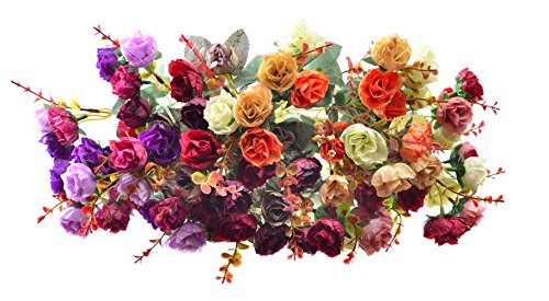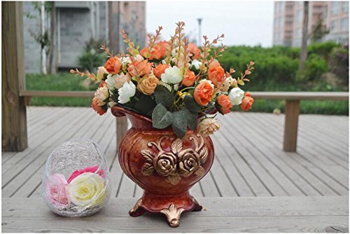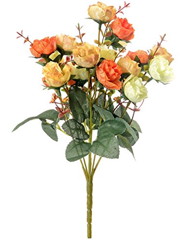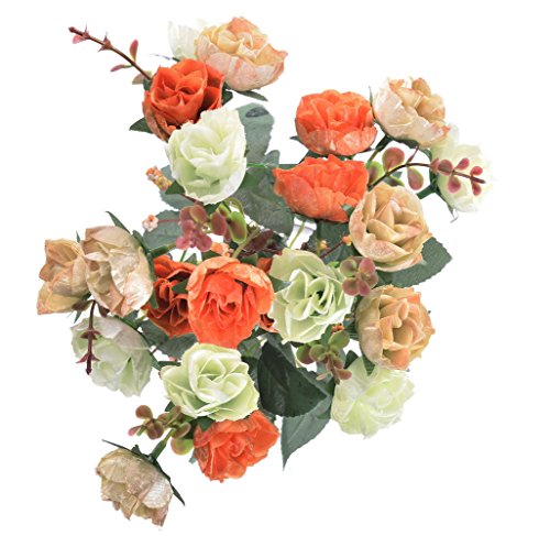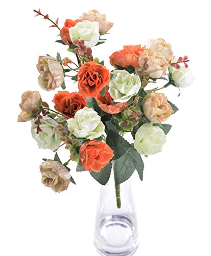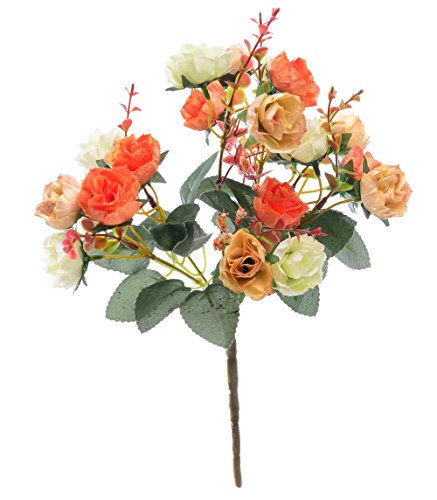 Pack of 3 Artificial 12” Rose Flower Bouquet 7 Stems 21 Heads Flowers for Home Party Decorations Wedding Favors - Orange
