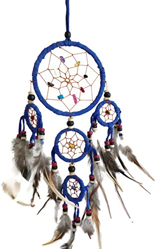 Moose546 Navy Blue Dream Catchers Hanging Ornaments with Feathers and Beads 3.5" Diameter and 15" Long C-026