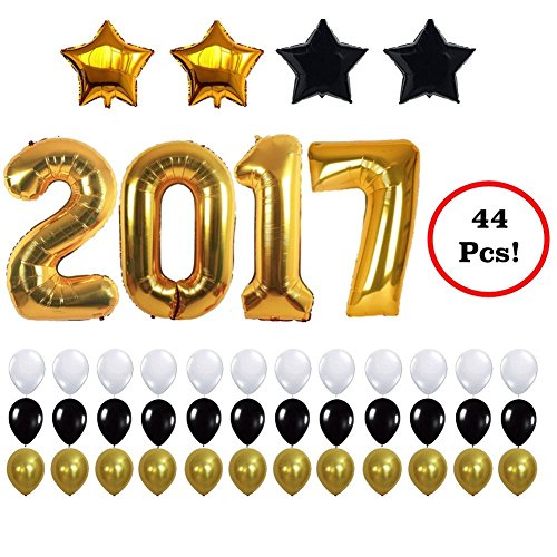 2017 Balloons Party Decorations White, Black, Gold - Graduation, Birthday, Wedding, Event Supplies - Mylar Latex - 44 Piece Set
