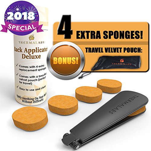 Thermalabs Back Applicator Deluxe is so easy to use! It has a firm handle and a comfortable steady hold. It comes with 4 extra replacement sponges and a beautiful pouch that is perfect for travel!