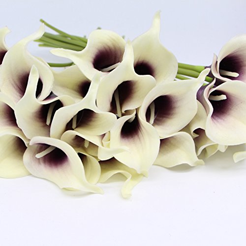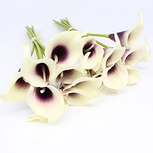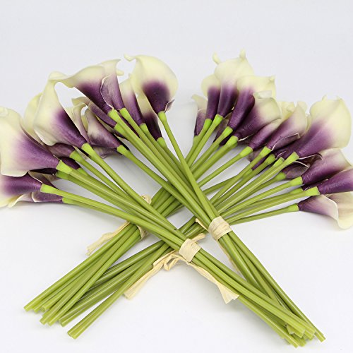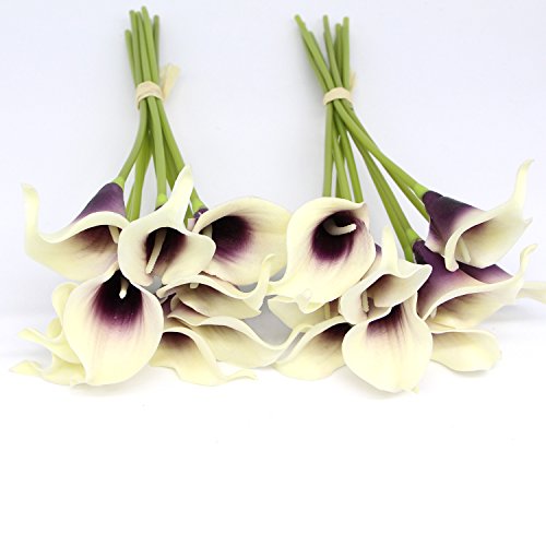 18pcs KRexpress Home Garden Hotel Party Event Christmas Wedding Gift Decoration Artificial Flowers Nearly Natural Calla Lily ,Purple in White