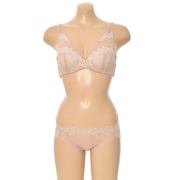 나뭇잎 무늬의 메탈릭 레이스가 유니크한 fullcup 형태의 부직포 브라로 부직포 컵선은 낮아서 답답함을 최소화하고 파워 네트와 레이스로 편안하고 안정적인 착용감을 선사합니다.컬러는 베이직하고 우아한 느낌의 로즈골드스킨과 가볍고 시원한 느낌의 실버그레이 컬러 두 가지로 구성되었습니다.
