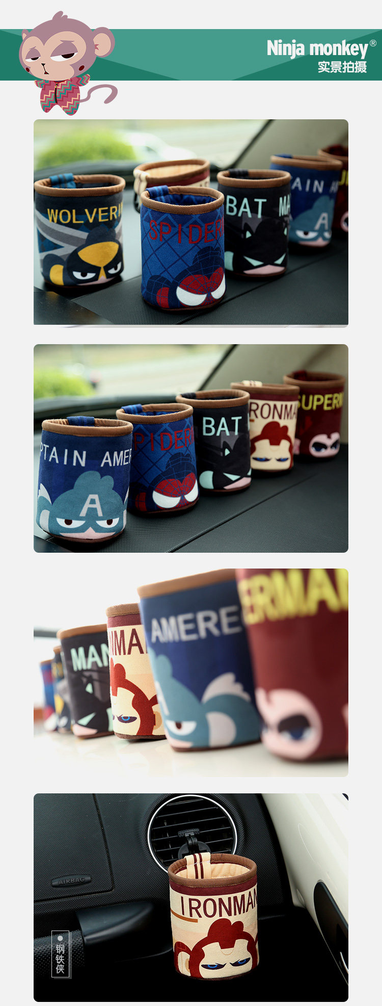 卡通车载置物盒小汽车置物袋收纳袋出风口摆件车用置物架