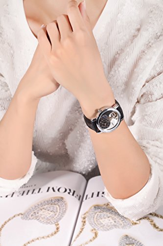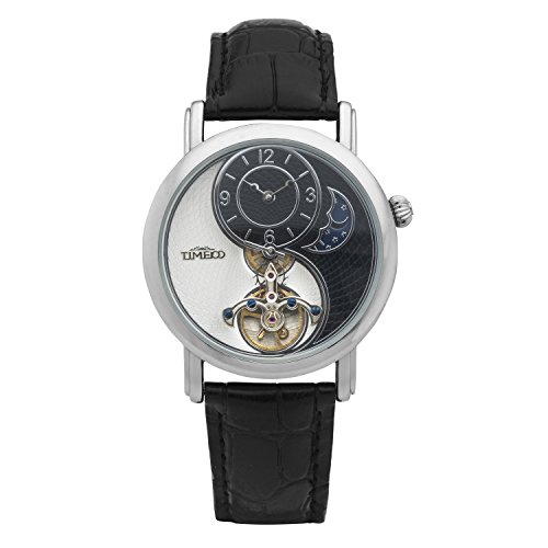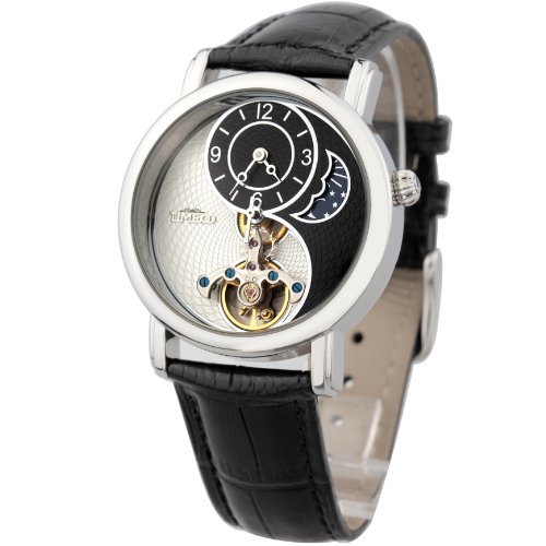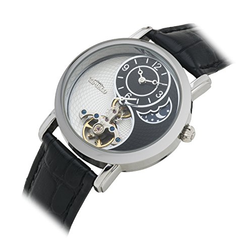 -. Title : Time100 Sun&Moon Phase Taichi Pattern Black Leather Strap Skeleton Mechanical Watch #W60012M.01A