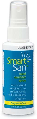 Studio : Best Sanitizers, Inc Publisher : Best Sanitizers, Inc Binding : Misc. Product Description Best Sanitizers Smart-San hand sanitizer spray (71 percent Ethanol) kills 99.9999 percent of 26 tested pathogens in 15 seconds. FDA approved as a no-rinse product, there is no place Smart-San can't go. Smart-San is dispensed in an atomized spray, ensuring total saturation of the most critical parts of the hands - the nails and cuticles. The liquid formula will never clog a dispenser. The light, liquid formula leaves no sticky residue on the skin and the emollients help to soften the skin.. 0
