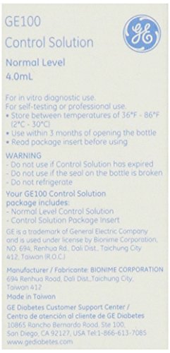 -. Binding : Health and Beauty -. Brand : Unknown -. EAN : 0794168832510 -. Feature : GE100 Glucose Control Solution for use with GE100 brand Blood Glucose Meters only. / Allow user to perform quality control checks to ensure that GE100 meters and test strips are working right. / For in vitro diagnostic use only -. Label : GE100 -. Manufacturer : GE100 -. Model : No Model -. MPN : No Model -. NumberOfItems : 1 -. PackageQuantity : 1 -. PartNumber : No Model -. ProductGroup : Health and Beauty -. ProductTypeName : HEALTH_PERSONAL_CARE -. Publisher : GE100 -. Studio : GE100 -. Title : GE100 Normal Control Solution, 1 Count -. UPC : 883489000729