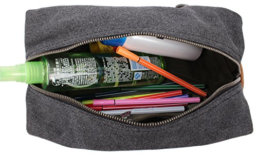 1. A Very Quality Canvas Travel Case Fits Everything An Individual Of Either Gender Could Reasonably Need For A Multiple-Day Trip. 2. The Zipper Is Made Of Metal And Runs Smoothly, And The Leather To Pull The Zipper Is Very Handy. 3. Ideal For Vacation, Business, Gym, Camping And Bathroom Organization.