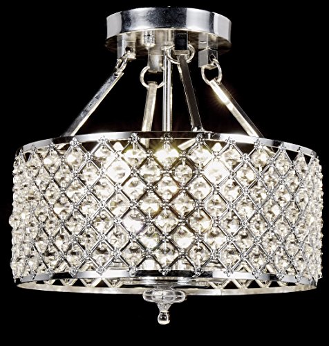 New Galaxy 4-light Chrome Finish Round Metal Shade Crystal Chandelier Semi-Flush Mount Ceiling Fixture