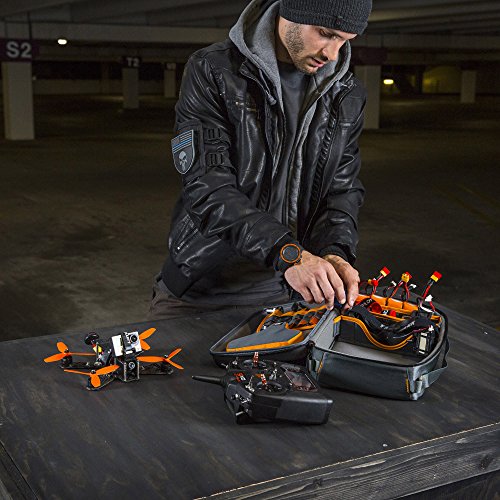 ULTIMATE TRANSMITTER PROTECTION. The interior adjustable “DroneGuard” dividers hold quad and transmitter in place for a secure hold. Keep your racing Drone safe with this lightweight, sturdy case. The transmitter pads are built to protect your sticks and keep them in their neutral position, giving you peace of mind so you can focus on your race