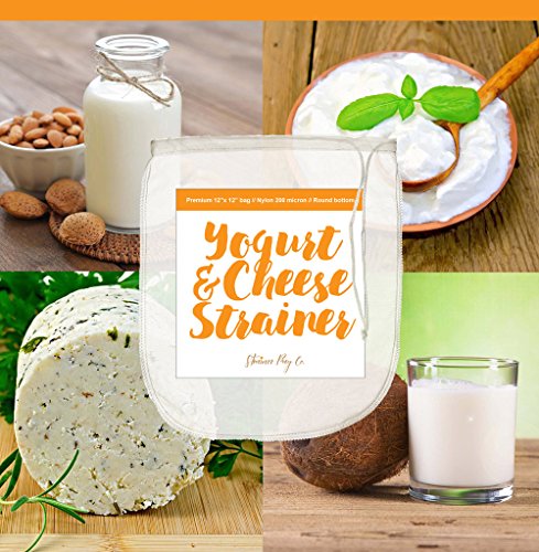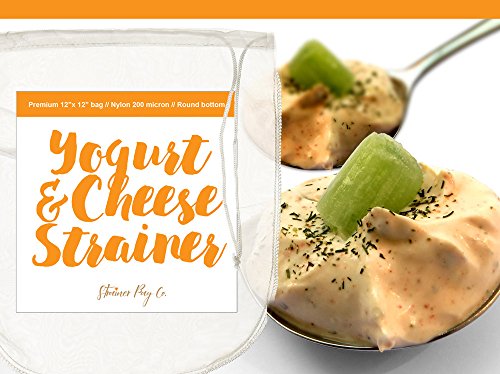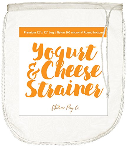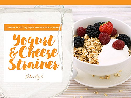 Strainer Bag Co Yogurt & Cheese Strainer Bag-Large 12"X12"-Reusable all purpose Food Strainer-Fine Mesh 200 Micron Nylon Bag-Free Recipe on back of Label + Free E-book