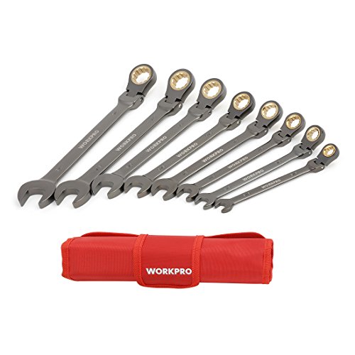 WORKPRO 8-piece Flex-Head Ratcheting Combination Wrench Set Cr-V Nickel Finish with Organizer Bag
