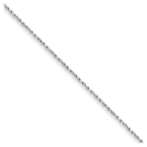SPECIFICATIONS: Jewelry Type: Anklets, Chain Type: Rope, Anklet Type: Chain Styles, Material: Primary: Gold, Material: Primary - Color: White, Material: Primary - Purity: 14K, Plating: Rhodium, Chain Length: 9 in, Chain Width: 1.3mm, Clasp /Connector: Lobster, Feature(1): Solid, Texture: Diamond-cut