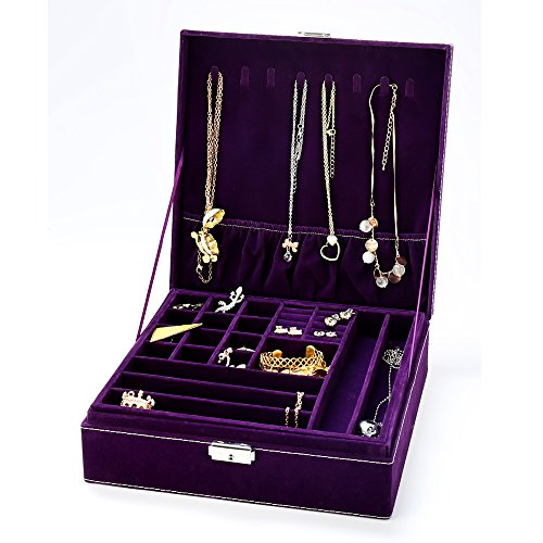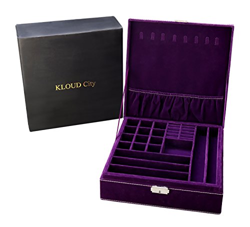 KLOUD City Purple two-layer lint jewelry box organizer display storage case with lock