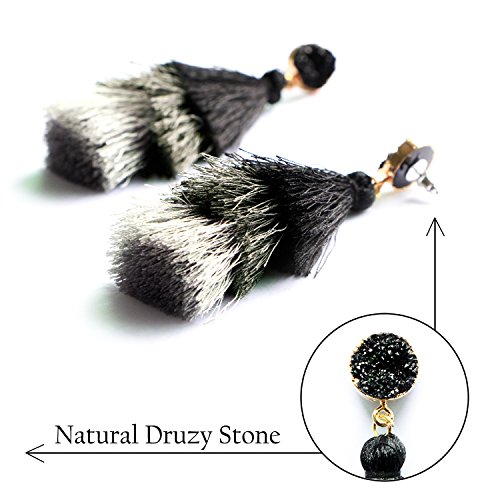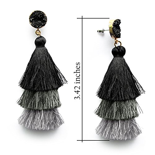 Colorful Layered Tassel Earrings Boho Dangle Drop Tiered Tassels Druzy Studs Earrings for Women, 4 ColorsFeatures:- Nickel-free and Lead-free material