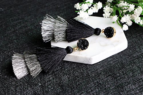 Material: silk tassel, natural druzy stone, nickel-free and lead-free