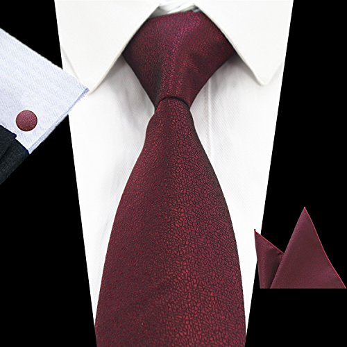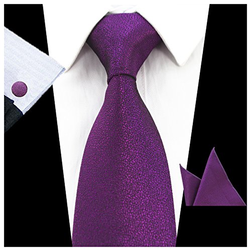 | JEMYGINS Solid Color Necktie Tie and Pocket Square Cufflink Set for Men |