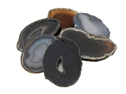 12 (Twelve) Drilled Agate Slices - A Grade ~1.5-3" Agate Pendant Slice Drilled Top Rock Paradise COA (12, Black/Brown)