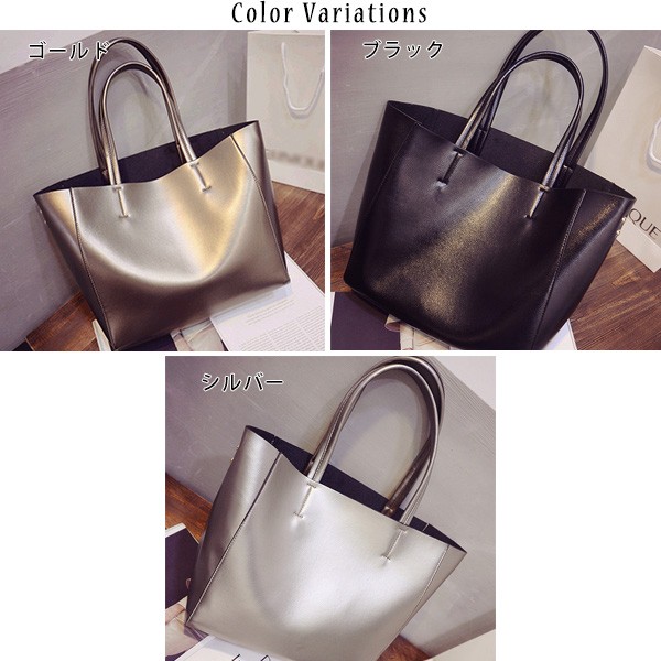 | 商品説明 | 2way ポーチ付き シャイニー ショルダー トートバッグ♪ 光沢カラーが今風のショルダートートバッグです。 取り外し可能なバッグインバッグ付きで中身の目隠しにも♪ |