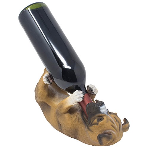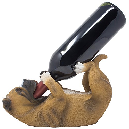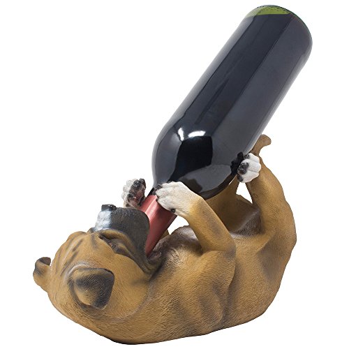 Decorative Drinking Boxer Dog Wine Bottle Holder Statue Display Stand Countertop Rack Table Centerpiece for Home Bar or Kitchen Counter Décor As Whimsical Gifts for Pet Lovers