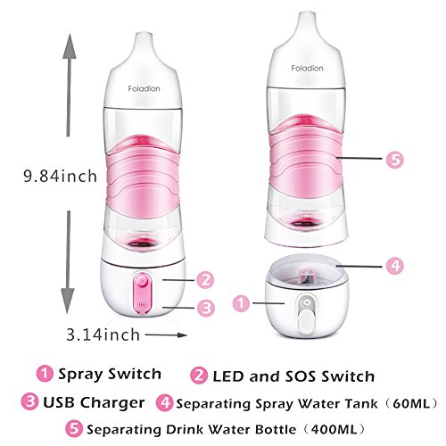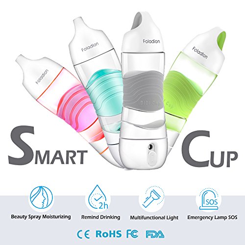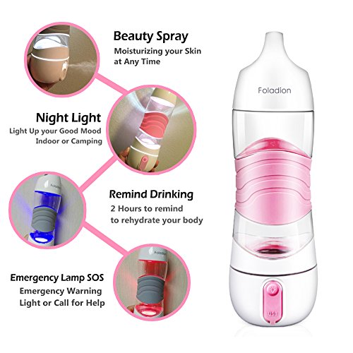 Foladion Smart Sports Water Bottle, Beauty Spray Moisturizing Skin, Night Light, SOS Warning Light, 2 Hours Drinking Remind, Humidifier, USB Recharging