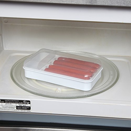 HOLDS & COOKS 4 JUMBO HOT DOGS - Specially designed for cooking hot dogs in the microwave, this container has space for four jumbo size dogs or regular sausages...holding them securely on prongs so they can't slide.