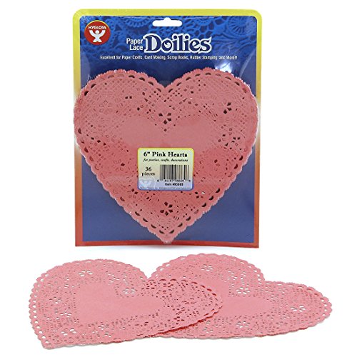 Hygloss 93665 36-Piece Heart Doilies, 6-Inch, Pink