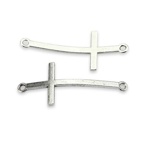 LolliBeads (TM) Slim Sideways Cross Silver Tone Curved Bracelet Connector Bar Link - 20 Pcs