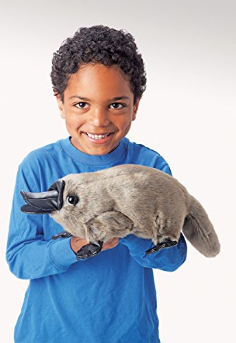 The unique Baby Platypus puppet from Folkmanis is a curious-looking animal with webbed feet, furry beaver tail, and a smooch-able, puckered up duck bill. Animate the mouth and front feet as you gaze into its emotive eyes. Ideal for use in interactive stage and puppet theater, Folkmanis Puppets are also great for teaching, daycare, school, pretend play, games and parties, or to pair with a book for storytelling. Easy to feed and care for, just add lots of love and snuggly fun. This puppet measures 16 x 8 x 4 inches (LxWxH). Folkmanis has been encouraging young imaginations to blossom since 1976 with its innovative and engaging specialty puppets, promoting creativity and discovery while winning nearly every industry, child development and kid-tested award. Folkmanis has grown to become the premier manufacturer of plush puppets worldwide, offering over 200 of the most heartwarming and realistically designed creatures--both exotic and familiar--on the market today. (Birthday: September, 2014).Feature
