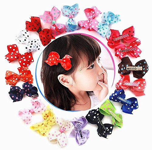 Cellot boutique Hair bow size:3 inch ;Made from 1 inch grosgrain ribbon; Attached with alligator clips. Set of 20 colors; Handmade and available for almost all occasions when is needed.