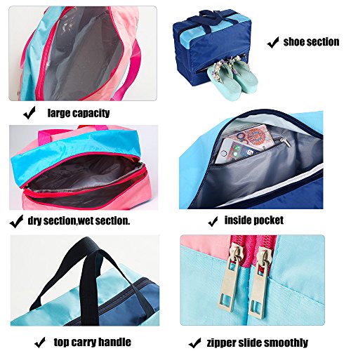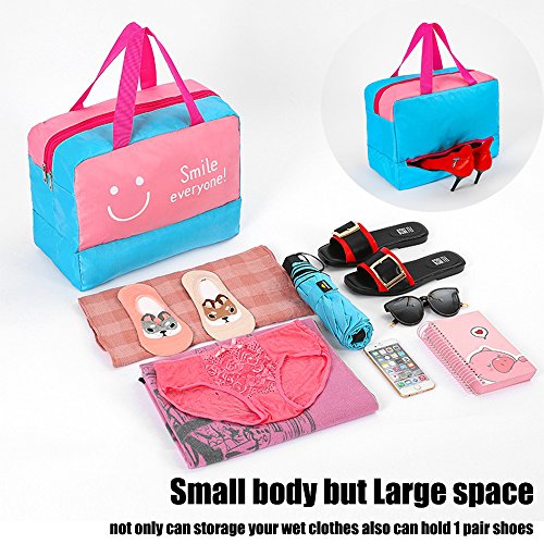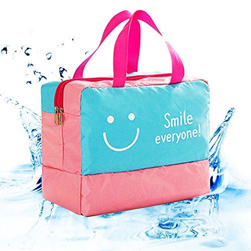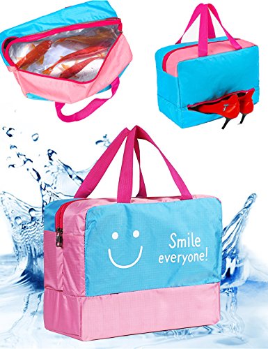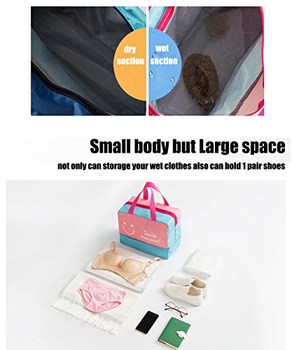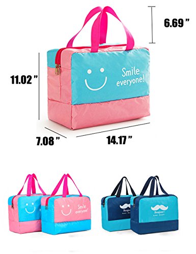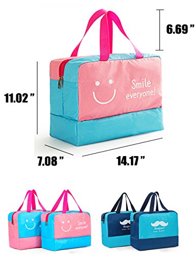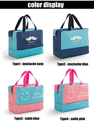 Specification: Material: Polyerster Occasion:swimming,climbing,surfing,drifting,gym, hot spring,travel,outdoora activies,school,work,picnic trip etc. Color:Smile pink,smile blue,mustache navy,mustache navy. Internal structure: Dry Section,Wet Section,Shoe Section Closure:zipper Dimensions:36 cm x 18 cm x 28cm (14.17 inch x 7.08 inch x 11.02 inch), strap length: 17cm /6.69inches Package Contents: 1 x bag