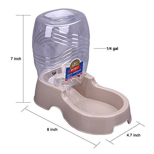Studio : BOBO Publisher : BOBO Binding : Misc. Product Description Features: Make feeding time easy and save time with BOBO Pet Automatic Replenish Waterer. This stylishly designed gravity feeder replenishes the food/water reservoir when levels get low. Features a food/water storage hopper with an wide mouth and removable lid making the pet automatic replenish waterer easy-to-clean and refill. Note: Change water regularly to keep the water clean. Please use warm water to wash the new bottle before using it. Specification: Color: Beige; Materials: BPA FREE PP plastic Size:8×4.7×7 inch (L x W x H). Package Include: Replenish Pet Waterer x 1 0