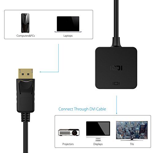 Schliessen Sie einen Displayport (DP, DP ++, Displayport ++) ausgestattet Laptop oder Desktop mit einem Monitor oder Projektor mit DVI-Eingang; Ein DVI-Kabel (separat erhaltlich) wird benotigt