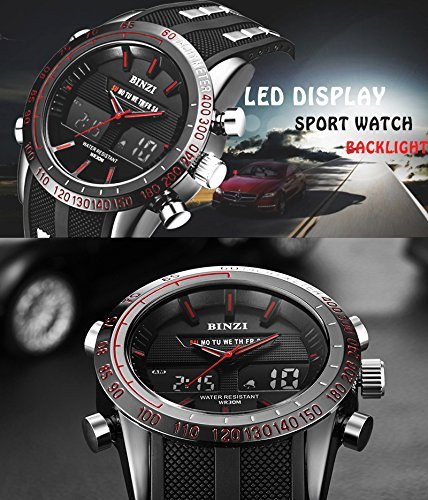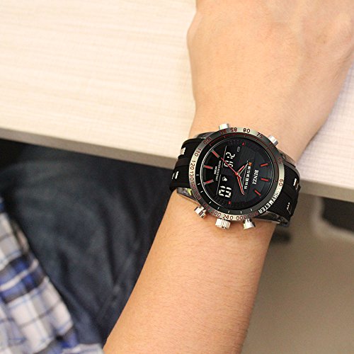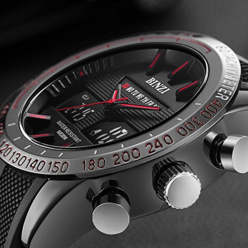 -. Title : 「ビンズ」BINZI メンズ腕時計 多機能 ミリタリー 日付表示 防水ウォッチ アナログ デジタル表示 パイロット(ブラック)BZ-1519Rメンズ