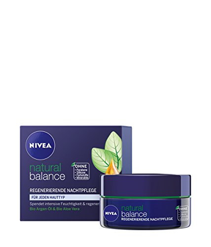 -. Binding : Health and Beauty -. Brand : Nivea -. EAN : 4005900086822 -. Feature : Provides intensive moisture and support the natural balance of the skin / For all skin types / With organic Argan Oil and organic Aloe Vera / Many of the ingredients are of natural origin / Without parabens, without silicons, without colorants and without mineral oil -. IsAdultProduct : 0 -. Label : Nivea -. Manufacturer : Nivea -. Model : 82302 -. MPN : 82302 -. PackageQuantity : 1 -. PartNumber : 82302 -. ProductGroup : Beauty -. ProductTypeName : BEAUTY -. Publisher : Nivea -. Studio : Nivea -. Title : Genuine Authentic german Nivea Natural Balance Regenerating Night Care Face Cream for all skin types 1.7fl oz. (50ml) - Imported from Germany