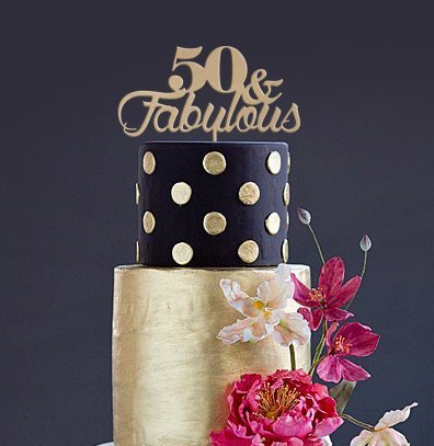 Cake Topper 50 & FABULOUS 9 3/4 x10 3/8 inches natural MDF Laser Cut 1/8 Thickness