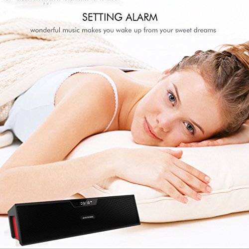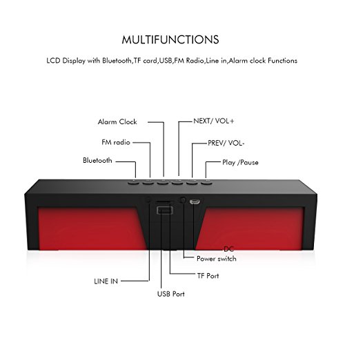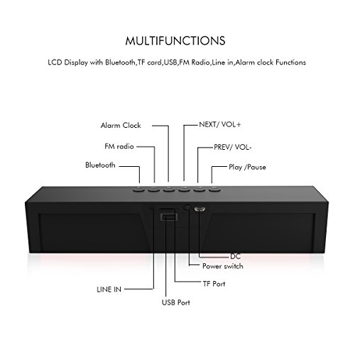 Untertutzt Bluetooth, TF-Karte, USB, FM-Radio, Line in, Wecker. LCD-Display zeigt Uhrzeit, Wecker, Line in, FM-Radio, Ladestatus, Bluetooth-Status und so weiter;